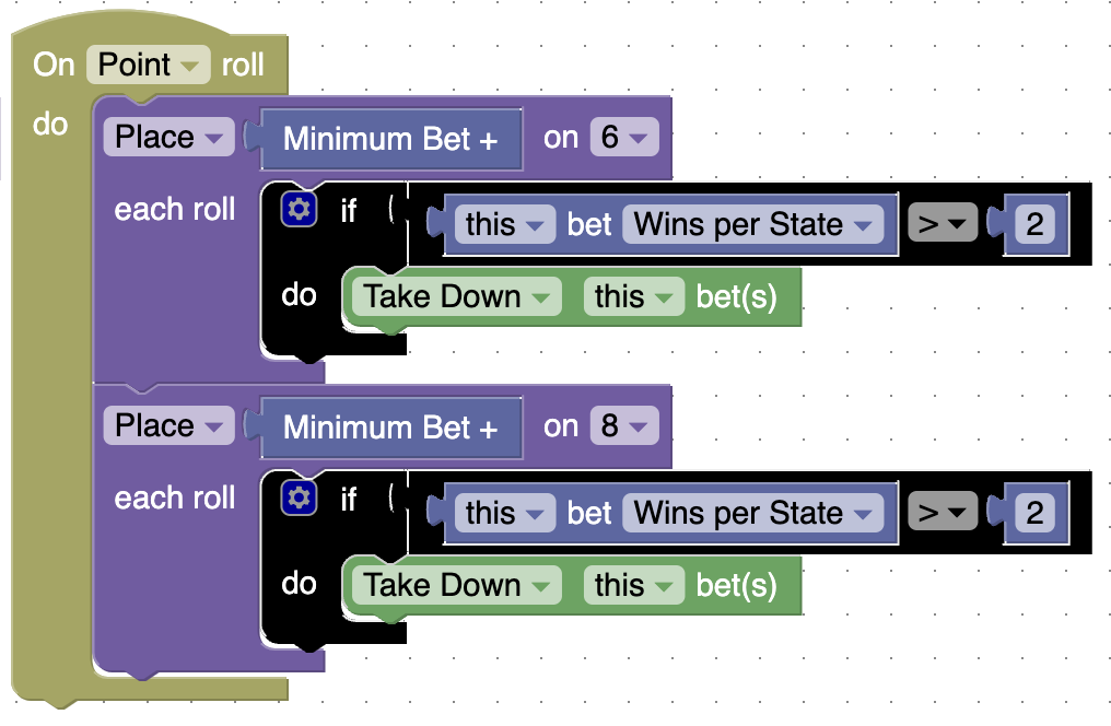 Using our intuitive drag-and-drop strategy builder, you can quickly create your favorite Craps strategy. You can even save multiple strategies to your account for later evaluation.